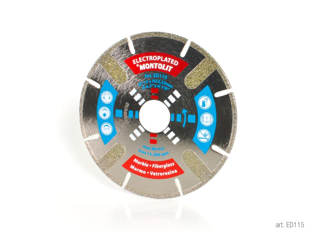 Die Montolit ED Diamanttrennscheibe ist mit galvanisch beschichteten Diamantsegmenten ausgestattet und eignet sich ideal für das Schneiden von Marmorplatten, Glasfaser und PVC. Sie ermöglicht besonders feine Schnittkanten und kann sowohl nass als auch trocken verwendet werden.