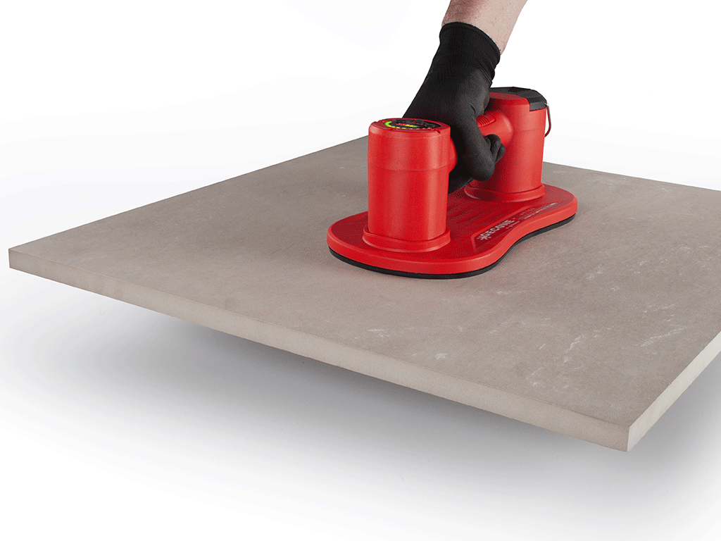 Der GECONE E-POWER ist ein professioneller, batteriebetriebener Saugnapf, der ausschließlich für das manuelle Heben und Handhaben von Keramik- und Porzellanfliesen, Glas, Granit und Marmor verwendet wird. Er verfügt über eine integrierte Pumpe, die von einem wiederaufladbaren Lithium-Akku betrieben wird. Ein elektronischer Druckschalter sorgt dafür, dass ein konstanter Unterdruck aufrechterhalten wird, um maximale Sicherheit während des Gebrauchs zu gewährleisten.